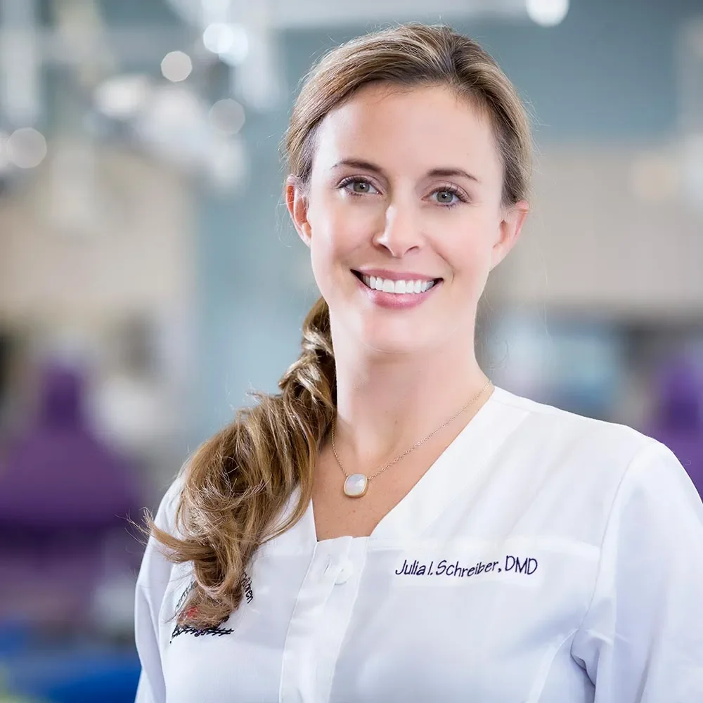 Originally from Daphne, Alabama, along the state’s scenic Gulf Coast, Dr. Julia Isherwood Schreiber is proud to bring compassionate pediatric dental care to families in Alabama. She earned her degree in biomedical sciences from Auburn University, graduating Magna Cum Laude, and went on to receive her Doctor of Dental Medicine (D.M.D.) from the University of Alabama at Birmingham in 2006.